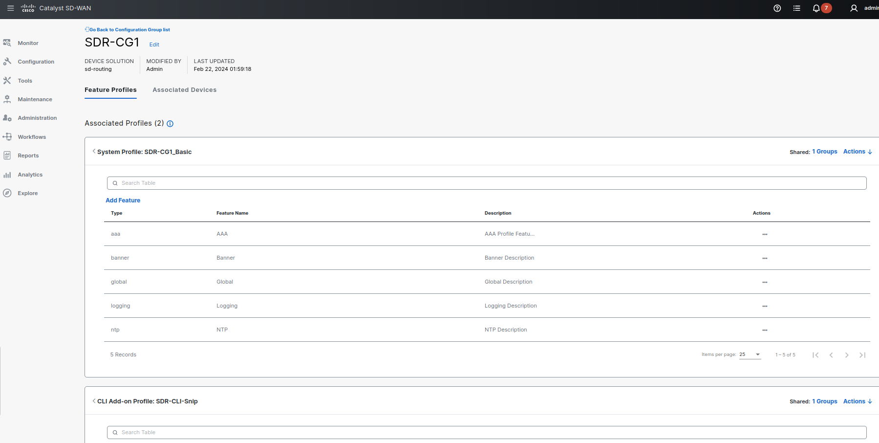 By the way, if you have a mix of SD-WAN and SD-Routing devices, you will see both Configuration Groups listed there. SD-WAN has (for now) a richer set of parcels, this should be gradually shifted to support more non-CLI based configuration for SD-Routing.