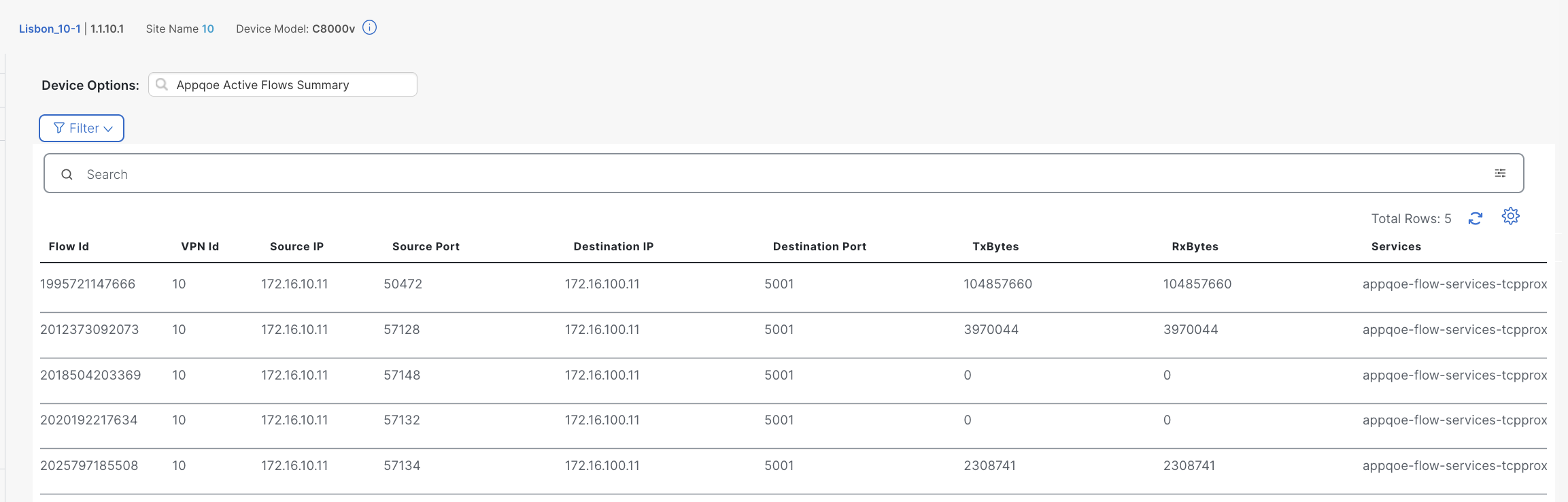 The Services column indicates the TCP Optimization is applied to those flows.