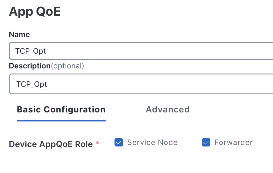 To start, I add the feature “App QoE” on the Service Profile with the following configuration: