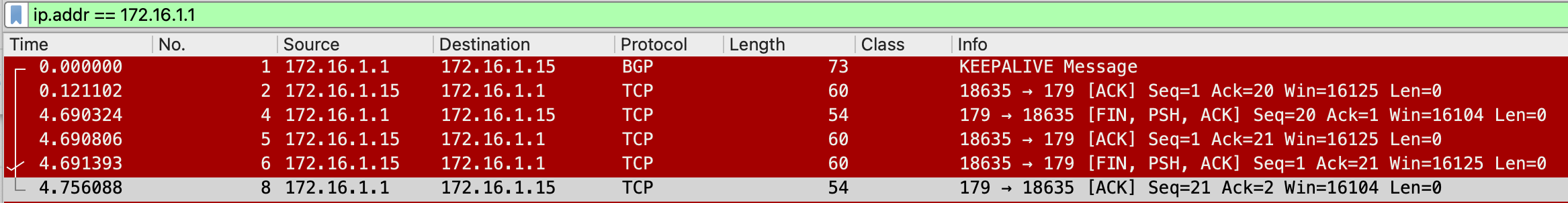 *Jul 30 18:09:01.490: %BGP-5-NBR_RESET: Neighbor 172.16.1.1 reset (Peer closed the session)