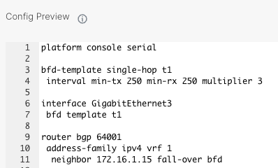 To overcome this situation, we can simply configure BFD and tie it to the BGP session: