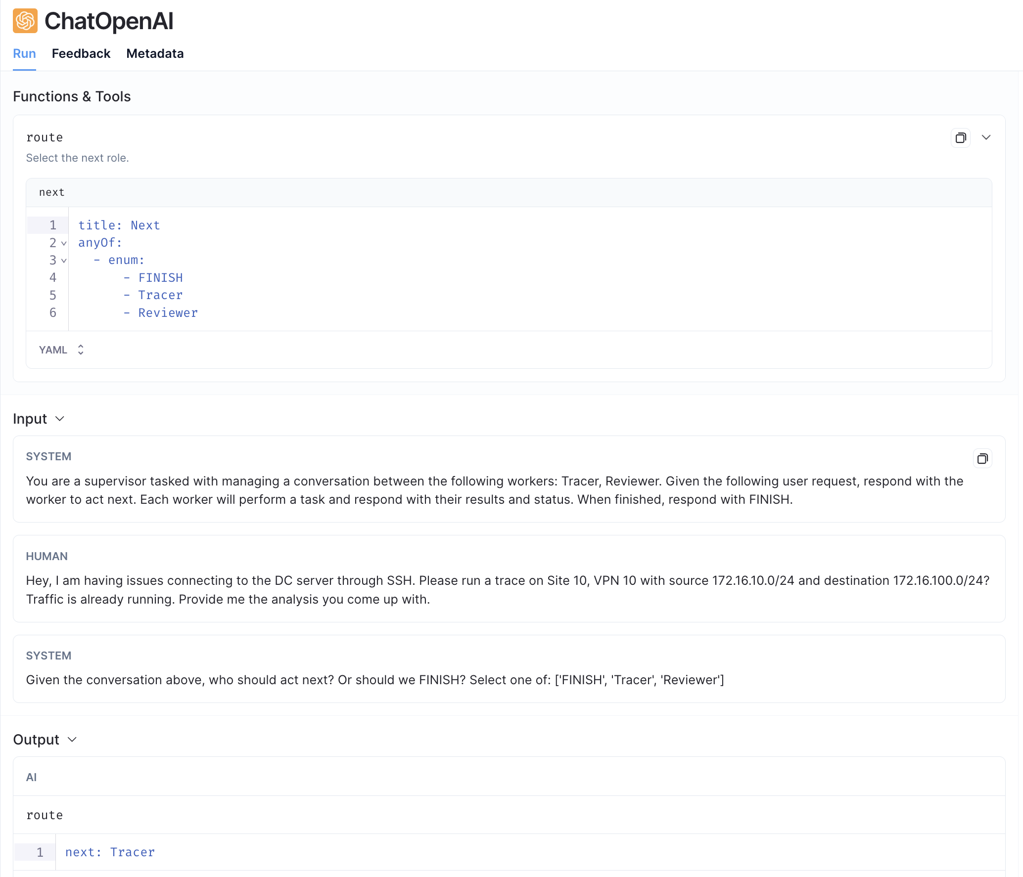 In my last post, I created a Cisco SD-WAN assistant to help me run NWPI traces and troubleshoot the network. The interaction with the assistant required the user to answer questions until receiving information about a particular flow and potential problems. In this post my goal is to use multiple agents and see if I can get to the same conclusion with less human interaction. Repository can be found here