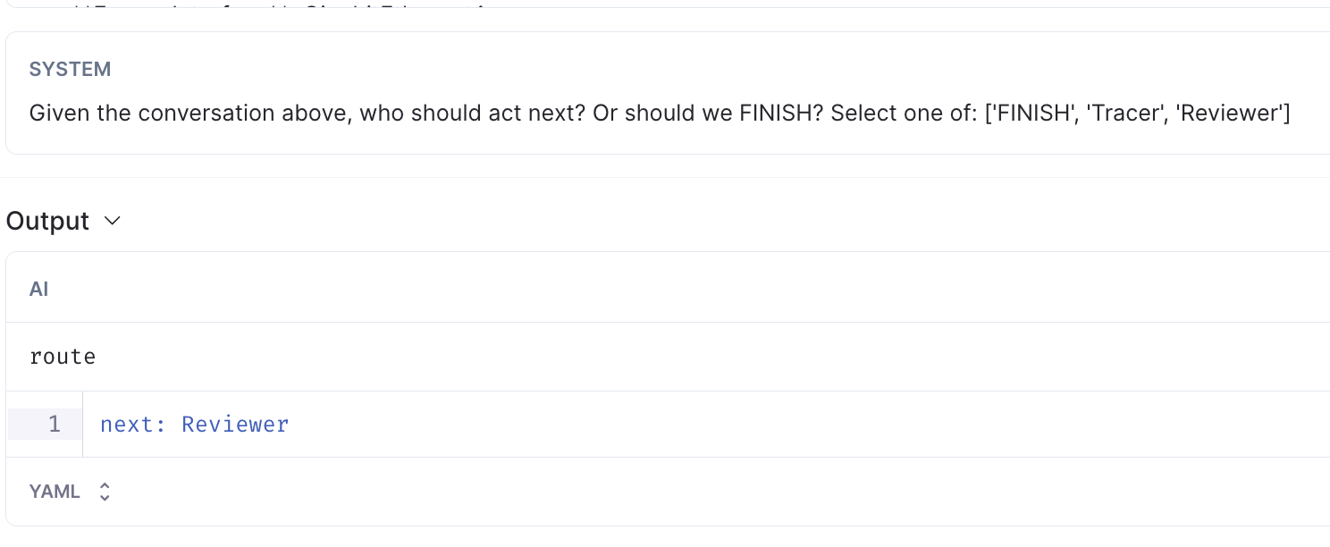 With this, every time the supervisor receives any input, it will come up with a “next” value from the available options and this will represent the next node on the graph.