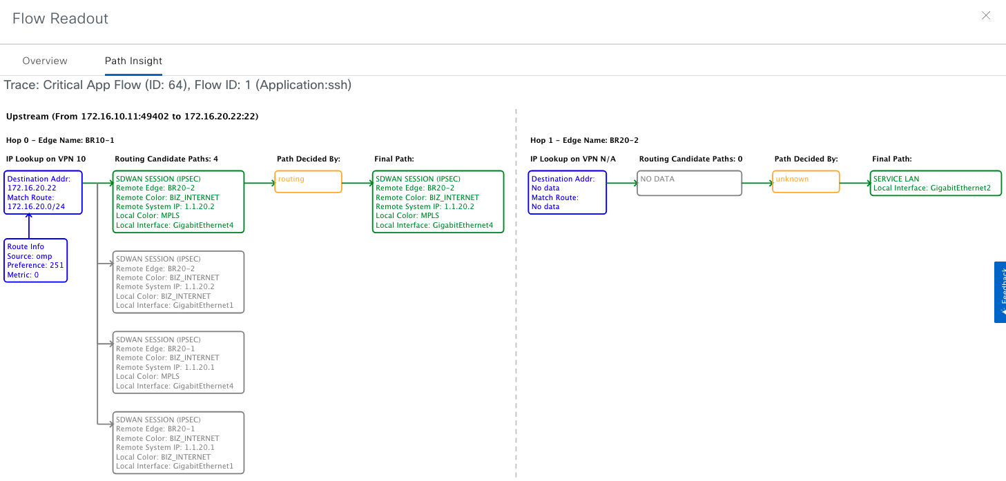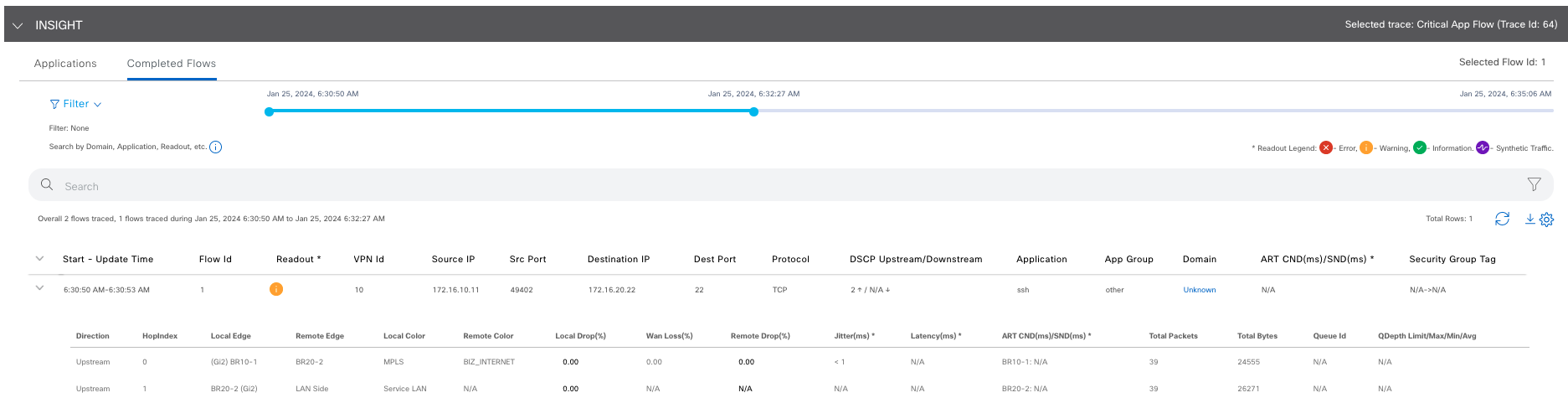 - SD-WAN KPIs specific to the flow- Loss, latency and jitter