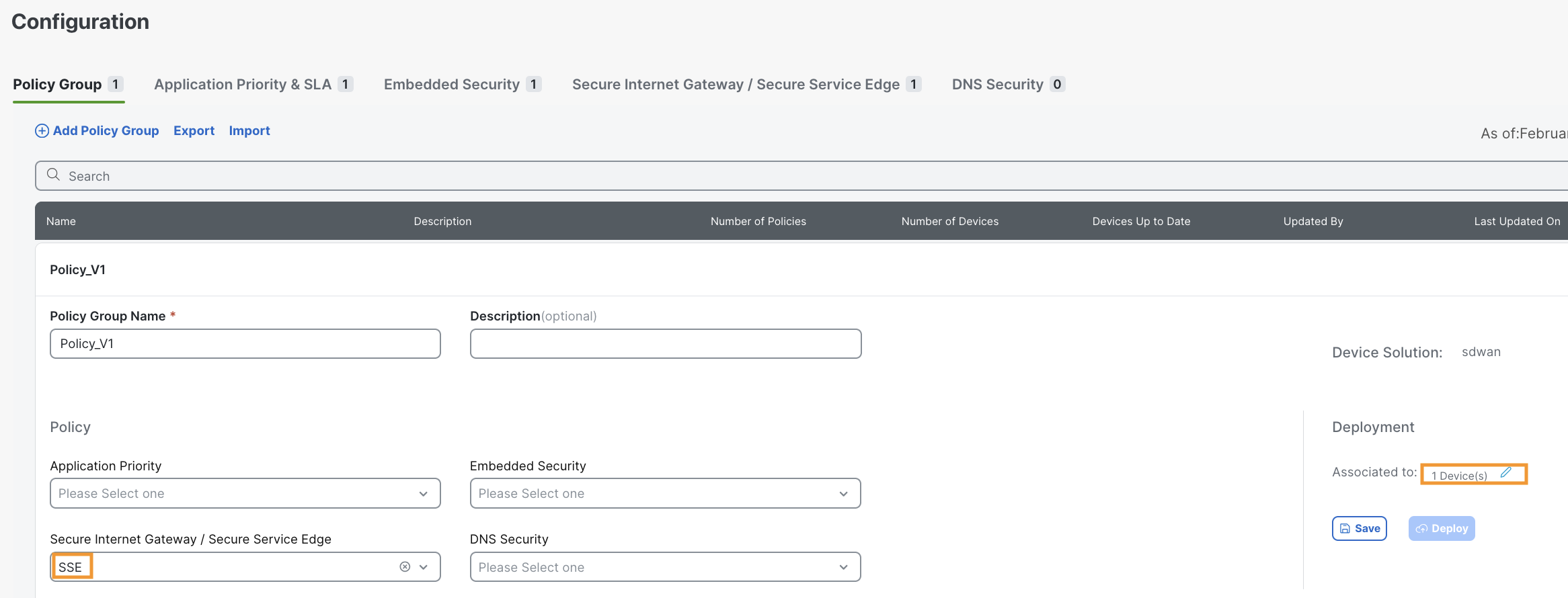 Luego, crea un Policy Group, asocia un dispositivo y agrega la política de SSE