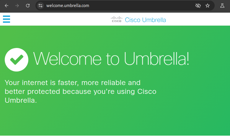 Por último, acceder a welcome.umbrella.com nos hará saber si el usuario está protegido