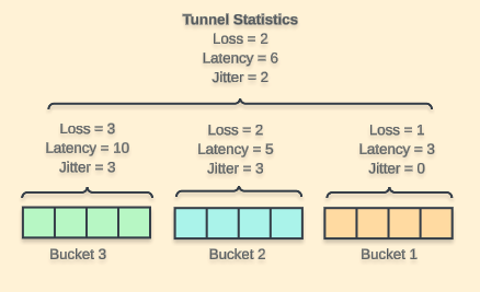 Este mecanismo actúa como una ventana deslizante que descartará el bucket más antiguo para hacer espacio al nuevo, recalculando las estadísticas del túnel cada poll interval.