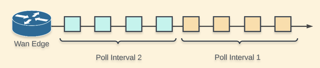 A medida que el WAN Edge sigue enviando paquetes, el poll interval es el temporizador que ayuda a organizarlos en buckets. Estos buckets se utilizan para calcular las estadísticas del túnel.