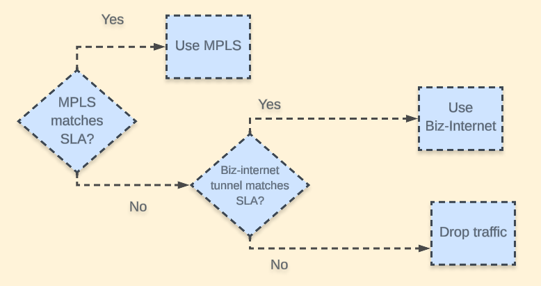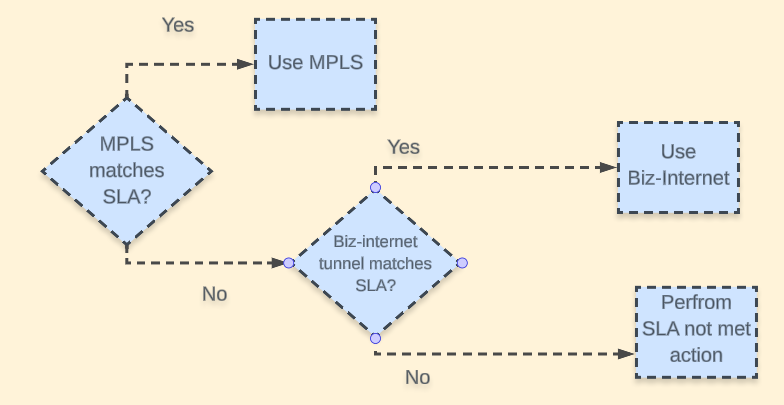 Ten en cuenta que incluso si tanto Biz-Internet como MPLS cumplen con el SLA, solo se utilizará MPLS.