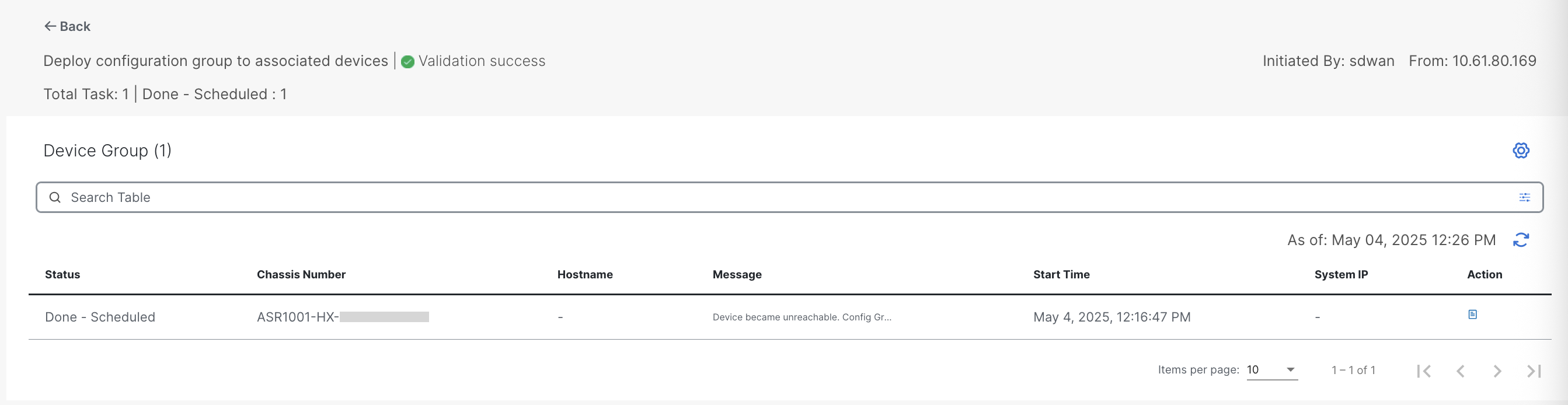 I create the device configuration and push it. The task is scheduled as device is offline.