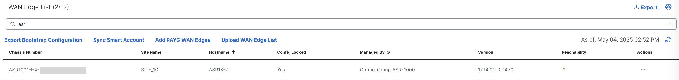 23 ASR1001-HX-XXXXXXXXXXX XXXXXXXX valid 192.168.200.1 12346 SDWAN-LAB123 default